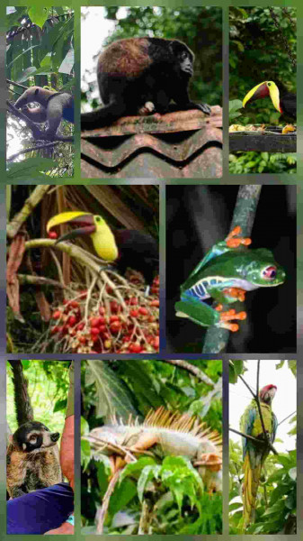 Eine fantastische Tierwelt: Brüllaffen aus nächster Nähe, Nasenbär, Ameisenbär, Rotaugenlaubfrosch, Tarantel, Schlangen, Tucan, Ara, Leguane mitten auf der Straße, die wundervollen Kolibris und soviel mehr.