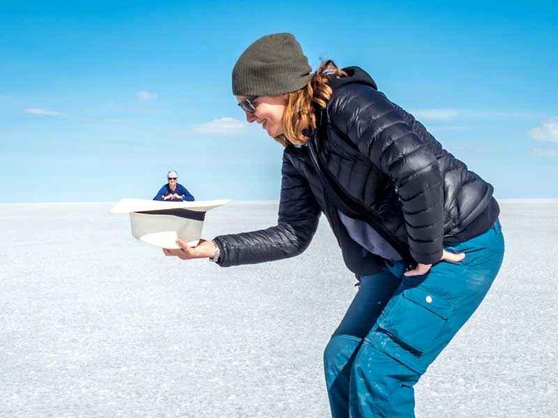 Auf dem Rückweg über den Salzsee bleibt Ihnen noch einmal Zeit für effektvolle Trickfotos in der Unendlichkeit des Salars. Gegen abend gelangen sie wieder nach Uyuni wo Sie noch einmal übernachten werden.