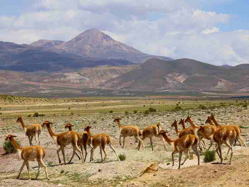 Am Nachmittag fahren Sie über das Hochland, vorbei an bizarren Felsformationen, durch Steppen und kurvenreiche Täler nähern wir uns Uyuni. Unterwegs gibt es viel zu sehen, besonders zahlreich sind die Lamaherden, die auf den Hochmooren (Bofedales) reichlich Nahrung finden. Mit etwas Glück erspähen wir auch kleinere Vicuñaherden. Diese Wildtiere mit besonders wertvoller Wolle sind die Vorfahren der Lamas und Alpacas.
