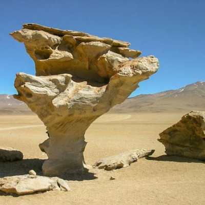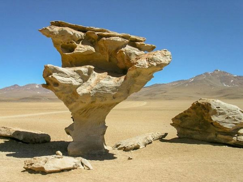 Am dritten Tag Ihrer Exkursion erreichen Sie das Dalí Tal mit seinen skurrilen Felsformationen. Über den Kondorpass gelangen Sie zur weißen Lagune und zur berühmten Laguna Verde mit dem beeindruckenden Lincancabur Vulkan im Hintergrund. Entlang einer großen Boraxmine führt die Tour weiter durch Villa Mar zur "Stadt der Steine" und Alota. Auf dem Weg zurück nach Uyuni passieren Sie Culpina K und die große Silbermine San Cristobál. Mit der Ankunft in Uyuni geht eine erlebnisreiche Tour zu Ende.