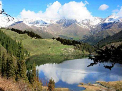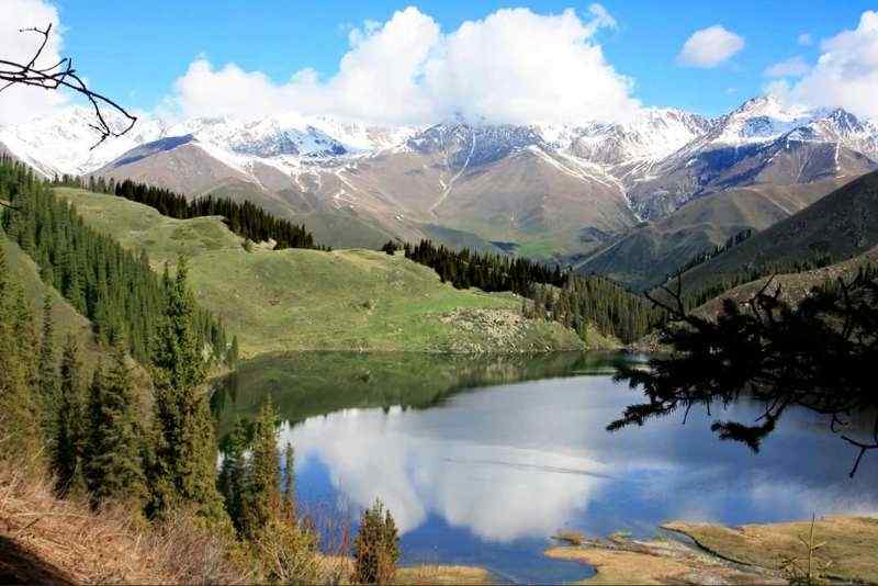 Nach dem Frühstück wandern wir zum Kol-Kogur-See KGPN007 auf 2 550 m. Der See liegt am Nordhang des Kungey Ala-Too-Gebirges in einem malerischen Waldgebiet. Er gilt als einer der schönsten Bergseen im nördlichen Tien Chan. Der See hat eine Trapezform.