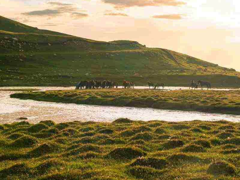 Vom Pass scheint der Son Kol See sehr klein zu sein, aber wenn wir hinuntergehen und uns dem See nähern, erscheint er wie ein großer und wunderschöner See.