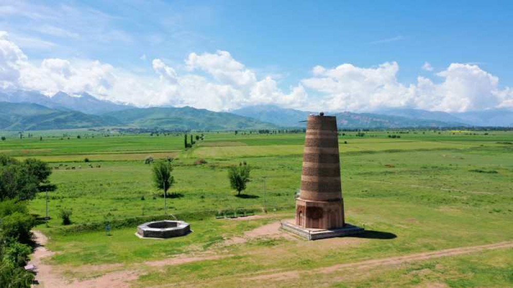 Unsere Reise beginnt mit einem Besuch des historischen Denkmals Buranaturm. Buranaturm KGAK001– ein großes Minarett im Chuy Valley im Norden Kirgistans. Es liegt etwa 80 Kilometer östlich der Hauptstadt Bischkek, in der Nähe der Stadt Tokmok. Der Turm ist alles, was von der Balasagyn Stadt übrigblieb, die von den Qarakhaniden am Ende des 9. Jahrhunderts gebaut wurde.