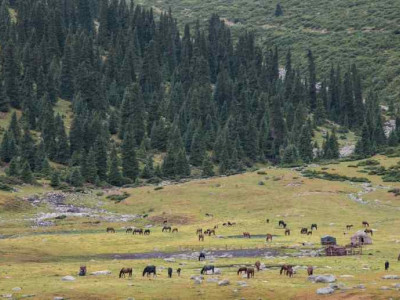 Nomadenkultur mit Jurten, Pferden & Hirten