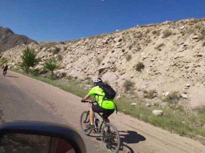 Das Mittagessen nehmen wir in einem kleinen Café am Straßenrand ein. Nach einigen Stunden Fahrt und der Überquerung des Too-Ashu-Passes beginnt der Fahrradabschnitt unserer Reise.