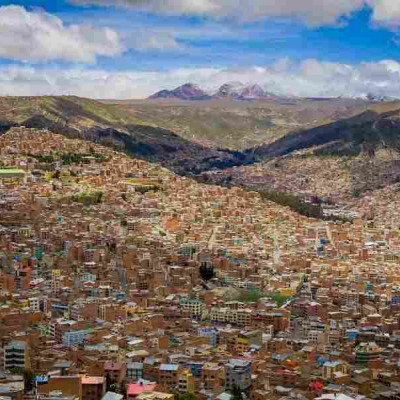Bei La Paz handelt es sich um die am höchsten gelegene „quasi“-Hauptstadt der Welt, die eigentliche Hauptstadt Boliviens ist Sucre. Sie gleicht einem Mondkrater, da sie in einem engen Tal liegt und sich auf Flächen von 3.000m bis 4.100m über dem Meeresspiegel erstreckt. Kaum ein grünes Fleckchen ist hier zu finden und auch der Sauerstoff ist in dieser auβergewöhnlichen Stadt knapp. Aber selbst wenn die landschaftliche Beschaffenheit der Stadt eine graue und triste Erscheinung ist, so findet sich reichlich Farbe, Leben und kulturelle Gegensätze unter seinen Menschen. Frauen mit Bowlerhüten und voluminösen Röcken prägen das Stadtbild genauso wie Geschäftsmänner in Anzügen.