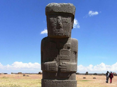 Auf einer Höhe von knapp 4000 m und rund 70 km westlich von La Paz liegt die Ausgrabungsstätte Tiwanaku. Sie ist die bekannteste und gleichzeitig auch die wichtigste archäologische Stätte Boliviens. Mit ihren Pyramiden- und Tempelruinen nimmt die Stätte eine Fläche von über fünf Quadratkilometern ein.