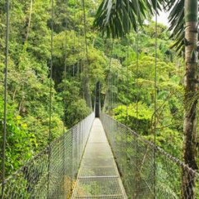 Verschiedene Vegetationszonen, von Nebelwald in den höheren Lagen bis hin zu tropischem Regenwald in niedrigen Lagen. Palmen, Farne, Bromelien & Orchideen - das erwartet Sie in der Gegend rund um den Nationalpark Tenorio! Dieser bildet außerdem den Lebensraum für Kapuziner, - und Kongoaffen, Riesenameisenbären, Pumas, Tapire, Halsbandpekaris und zahlreiche Vogelarten, unter anderem Trogonen und Glockenvögel.