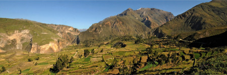 Am Morgen fahren wir hinauf ins Altiplano genannte Anden-Hochland, vorbei an Lama- Alpaka- und Vicuñaherden im Nationalreservat Pampa Cañahuas und über den Patapampa-Pass auf 4910 m Meereshöhe, dem höchsten Punkt unserer Reise. Von hier hat man einen atemberaubenden Blick auf die umliegenden Berge und hinunter ins Colcatal, einem der tiefsten Canyons der Welt mit seinen terrassenförmig angelegten Feldern und steil aufragenden Felswänden. Gegen Mittag erreichen wir Chivay, der grössten Ortschafts des Tals. Hier machen wir eine Mittagspause und Sie können danach auf dem Markt die kunstvollen, farbenfrohen Stickerein aus Alpakawolle bewundern.